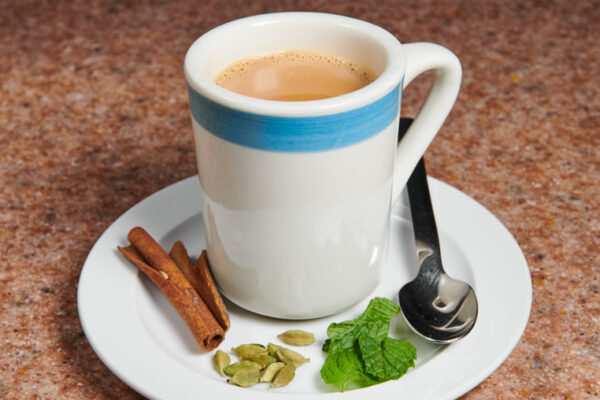 Tea leaves brewed with water, milk, and spices to offer a sweet aromatic flavor